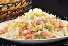扬州炒饭又名扬州蛋炒饭,是江苏省扬州市的一道传统名菜,属于淮扬菜,其主要食材有米饭、火腿、鸡蛋、虾仁等。扬州炒饭选料严谨、制作精细、加工讲究,而且注重配色。炒制完成后,…全部>>