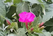 即紫茉莉,英文名:Four-o'clock,Marvel of Peru,为紫茉莉科、紫茉莉属多年生草本植物,一年生栽培。株高50~80cm。根粗壮,茎多分枝而散生。叶对生,卵形或心脏形。花数朵簇生…全部>>