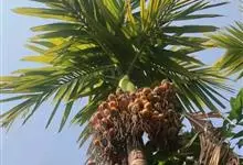 槟榔,是木兰纲、初生目、棕榈科、槟榔属常绿乔木,茎直立,乔木状,高10多米,最高可达30米,有明显的环状叶痕,雌雄同株,花序多分枝,子房长圆形,果实长圆形或卵球形,种子卵形,花果期3-4月。…全部>>