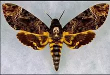 鬼脸天蛾,是鳞翅目天蛾科面形天蛾属动物。成虫翅展100~125毫米,体黑褐色;胸背有骷髅形斑纹;卵圆球形,直径约2毫米,淡黄绿色,表面光滑;老熟幼虫体长70~90毫米,蛹体长约56毫米;前翅为褐色,…全部>>