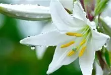 麝香百合:在中国台湾亦称铁炮百合。鳞茎球形或近球形,高2.5-5厘米;鳞片白色。茎高45-90厘米,绿色,基部为淡红色。叶散生,披针形或矩圆状披针形,两面无毛。花单生或2-3朵;花喇叭形,白色,筒外…全部>>