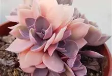 紫珍珠是景天科石莲花属的多年生肉质草本植物。植株中小型;叶片肉质,匙形,呈莲座状紧密排列;叶片粉紫色,叶缘呈粉白色,光照充足时颜色亮丽,不足时叶色会呈现深绿色或灰绿色,叶面光滑,被轻微白粉,…全部>>