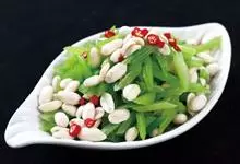 西芹花生米是用西芹、熟花生米并加以各种辅料制作成的凉菜,其特点既青翠可人,又脆口爽人。全部>>