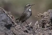 蓝点颏亦称“蓝喉歌鸲”,通称蓝靛颏儿。身体大小和麻雀相似,体长12-13厘米,体重17-18克。头部、上体主要为土褐色。眉纹白色。尾羽黑褐色,基部栗红色。颏部、喉部辉蓝色,下面有黑色横纹。下体白色。…全部>>