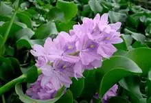凤眼莲 Solms),是雨久花科凤眼莲属的浮水草本植物。凤眼莲茎极短,具长匍匐枝;叶基生,莲座状排列,宽卵形或宽菱形,先端钝圆或微尖,基部宽楔形或幼时浅心形;花葶具棱,穗状花序;花冠近两侧对称,…全部>>