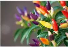 五色椒又名朝天椒,五彩辣椒,为辣椒 变种,味涩。属茄科多年生半木质性植物,常作一年生栽培;江苏沭阳一带有不少花农种植,其株高30厘米—60厘米,分枝多、茎直立,单叶互生;花白色,开花期5月初—7月…全部>>