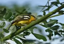 橙腹叶鹎体形大小和金额叶鹎相似,体长16~20厘米。额至后颈黄绿色,其余上体绿色,小覆羽亮钴蓝色,形成明显的肩斑。颏、喉、上胸黑色具钴蓝色髭纹,其余下体橙色。飞羽和尾羽雄鸟黑色、雌鸟绿色。…全部>>