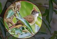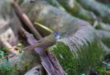 白喉冠鹎:体长20-25厘米。头顶红褐色,有长而细的羽冠、红褐色,头侧灰色。上体橄榄绿黄色,飞羽暗褐色,外翈茶黄色,尾下覆羽皮黄色。…全部>>