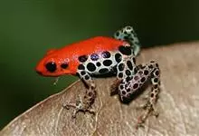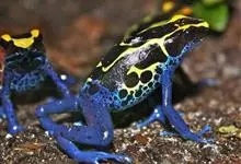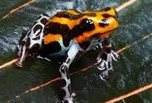 箭毒蛙,是无尾目箭毒蛙科箭毒蛙属动物。箭毒蛙体形较小,一般长1-6厘米,身上的颜色多为黑色与红色、黄色、橙色、绿色等;皮肤内有粘液分泌腺,能使皮肤随时保持湿润;四肢布满鳞纹;足间无蹼。…全部>>