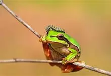 雨蛙,脊椎动物亚门,两栖纲,无尾目,雨蛙科的1属,种类约250种。雨蛙肩带弧胸型,椎体为前凹型。适于树栖,指、趾末端多膨大成吸盘,末两骨节间有1间介软骨,是趋同演化的一个物种。…全部>>