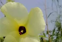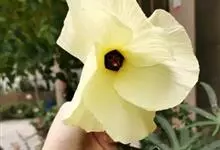 黄葵是锦葵科秋葵属的一年生或二年生草本植物。植株高1-2米,被粗毛;叶通常掌状深裂,裂片披针形至三角形,边缘具不规则锯齿,偶有浅裂似械叶状,两面均疏被硬毛,叶柄疏被硬毛;花单生于叶腋间,…全部>>