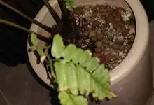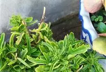 仙女之舞是景天科、伽蓝菜属植物。常绿肉质灌木,株高可达2-3米。幼株茎上有毛。叶有柄;单叶对生,阔卵状三角形,肉质;新叶开展,老叶正面凹、背面圆凸,缘具稀锯齿,橄榄绿色至灰绿色,被稠密的灰白色毛。…全部>>