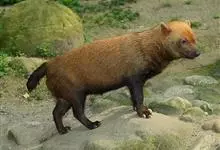 薮犬:体长57-75厘米,肩高20-30厘米,尾长13厘米;体重5-8千克。毛色棕红或棕檀色,尾毛颜色更深。喉头处有浅红色斑块。头宽,嘴短。足部有不发达的蹼,这证明该物种经常傍水而生。全部>>
