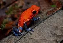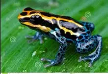 箭毒蛙,是无尾目箭毒蛙科箭毒蛙属动物。箭毒蛙体形较小,一般长1-6厘米,身上的颜色多为黑色与红色、黄色、橙色、绿色等;皮肤内有粘液分泌腺,能使皮肤随时保持湿润;四肢布满鳞纹;足间无蹼。…全部>>