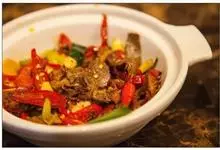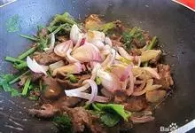 小炒黄牛肉是以牛肉、青尖椒、红尖椒等食材制成的一道菜品,香味浓郁,味道鲜美,…全部>>