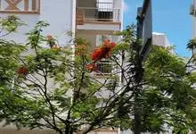 凤凰木 Raf.) ,别名火树、红花楹、凤凰花、火凤凰、金凤花、红楹,是豆科凤凰木属高大落叶乔木,树皮灰褐色,粗糙。二回偶数羽状复叶互生,矩圆形,两面均被柔毛。伞房式总状花序,花大,花瓣5枚,圆形,…全部>>