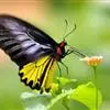 金裳凤蝶是凤蝶科、裳凤蝶属的动物。金裳凤蝶身体呈黑色,头、颈和胸侧有红毛,腹部有黑黄两色相间条纹,雄蝶前翅黑色,具黑天鹅绒光泽,各脉两侧灰白色,后翅金黄色,各室外缘有等腰三角形黑斑1枚,斑内侧有晕,…全部>>