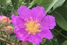 紫薇是千屈菜科紫薇属的落叶小乔木或灌木植物,原生分布于亚洲,南美洲、北美洲、大洋洲有引入。其树干高,树皮平滑,呈灰色或灰褐色;枝干多扭曲,小枝纤细,略呈翅状;叶纸质,…全部>>