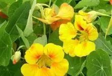 旱金莲是旱金莲科旱金莲属蔓生一年生草本植物。叶互生,叶柄向上扭曲,盾状,叶圆形,具波状浅缺刻,下面疏被毛或有乳点;花黄、紫、桔红或杂色,花托杯状,花瓣为圆形,边缘具缺刻;果实为扁球形;花果期6-10月,…全部>>