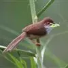 金眼鹛雀是莺科、鹛雀属小型鸟类。体长16-20厘米。头顶和上体棕褐色,两翅表面肉桂红色,尾褐色具明暗相间横斑。眼周金黄色,眼先、眼上、眼下、颊以及颏、喉和上胸概为白色,其余下体茶黄色,脚橙黄色。…全部>>