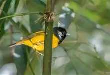 金头穗鹛小型鸟类,体长10~11厘米,是一种黄色小鸟。头顶金黄色有黑色纵纹,眼先黑色,在头、颊和耳羽金黄色的衬托下亦甚醒目。上体橄榄黄色,下体亮黄色,腹和两胁沾绿。…全部>>