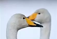 小天鹅为大型水禽,体长110~130厘米,体重4~7千克,雌鸟略小。它与大天鹅在体形上非常相似,同样是长长的脖颈,纯白的羽毛,黑色的脚和蹼,身体也只是稍稍小一些,颈部和嘴比大天鹅略短,但很难分辩。最…全部>>