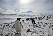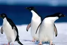 阿德利企鹅在企鹅家族中属中、小型种类,体长72-76厘米,和许多种类企鹅一样,雌鸟和雄鸟同形同色,从外形难以辨认。眼圈为白色,头部呈蓝绿色,嘴为黑色,嘴角有细长羽毛。羽毛由黑、白两色组成,…全部>>