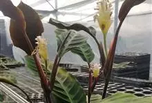 绒叶肖竹芋 Lindl.)是竹芋科,肖竹芋属多年生中等大草本植物,株高可达1米。叶片长圆状披针形,不等侧,叶面深绿,有黄绿色的条纹,天鹅绒般,叶背幼时浅灰绿色,老时淡紫红色,头状花序,花冠紫堇色或白色,…全部>>