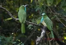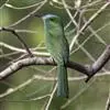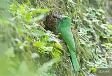 蓝须夜蜂虎是佛法僧目、蜂虎科的鸟类,体长约30厘米,是绿色林栖型蜂虎,蓝色的胸羽蓬松,嘴厚重而下弯。成鸟顶冠淡蓝,腹部棕黄带绿色纵纹。尾羽腹面黄褐。亚成鸟全身绿色。喉、胸部中央的羽甚长和亮色;该物种…全部>>