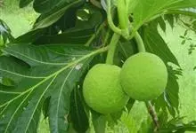 面包树 Fosberg)是桑科波罗蜜属植物。叶大,成熟之叶羽状分裂,表面深绿色,背面浅绿色;穗状花序单生叶腋,雄花序长圆筒形至长椭圆形或棒状;聚花果倒卵圆形或近球形;花期为3~5月,果期为7~10月。…全部>>