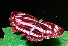 小环蛱蝶,Neptis sappho ,鳞翅目,蛱蝶科环蛱蝶属的一个物种。翅展45mm。翅面黑色,斑纹白色前翅中室有一白色纵纹,断续状;翅反面棕红色。分布于东北、河南、陕西、台湾、北京等。全部>>
