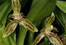 栗鳞贝母兰:根状茎粗壮,坚硬,粗7-8毫米,密被紫褐色的革质鞘。假鳞茎在根状茎上通常相距2-3厘米,长圆形或近圆柱形,向顶端稍变狭,顶端生2枚叶。叶革质,长圆状披针形至椭圆状披针形。花葶连同幼嫩的假…全部>>