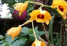 束花石斛是兰科石斛属植物。茎粗厚,肉质,下垂或弯垂,圆柱形,不分枝,具多节。叶二列,互生于整个茎上,纸质,长圆状披针形。伞状花序近无花序柄,每2-6花为一束,侧生于具叶的茎上部;花黄色,…全部>>
