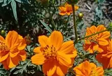 黄秋英是菊科秋英属的一年生草本植物。枝叶为对生的二回羽状复叶,裂片呈披针形;花为舌状花,有单瓣和重瓣两种,颜色多为黄、金黄、橙色,红色;瘦果棕褐色,粗糙有毛,顶端有细长喙;春播花期6-8月,…全部>>