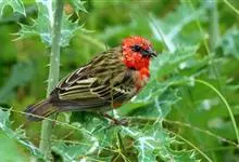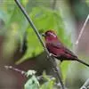 酒红朱雀小型鸟类,体长13~15厘米。雄鸟通体深红色,头部深朱红或棕红色,下背和腰玫瑰红色,眉纹粉红色而具丝绢光泽。两翅和尾黑褐或灰褐色、具暗红色狭缘,内侧两枚三级飞羽具淡粉红色先端。…全部>>
