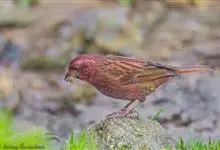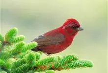酒红朱雀小型鸟类,体长13~15厘米。雄鸟通体深红色,头部深朱红或棕红色,下背和腰玫瑰红色,眉纹粉红色而具丝绢光泽。两翅和尾黑褐或灰褐色、具暗红色狭缘,内侧两枚三级飞羽具淡粉红色先端。…全部>>