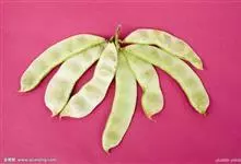 扁豆 Sweet)是豆科扁豆属多年生缠绕藤本植物,又名鹊豆、沿篱豆、藤豆等。全株几无毛,茎长可达6米。羽状复叶具3小叶;托叶基着,叶片披针形;小托叶线形,小叶宽三角状卵形,宽与长相等,…全部>>