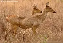 豚鹿也叫芦蒿鹿,体形中等,但较为粗壮,四肢较短,显得矮胖,臀部钝圆且较低,姿态象猪,因而得名。雄性豚鹿长着细长的三叉角,全身淡褐色,生活在沿河两岸的湿地。昼伏夜出,既善穿越灌草丛,也能跳跃障碍。多单…全部>>
