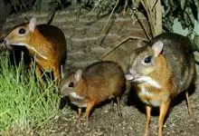 鼷鹿,别名小鼷鹿,共38个亚种。体形略比野兔大,体重1.3~2.0kg,体长420~630mm,肩高约200mm,是仅次于蹄兔目成员最小的有蹄类动物,也是鼷鹿科种体型最小的一种。面部尖长,无角,…全部>>