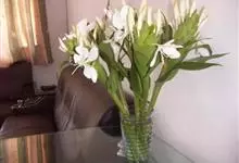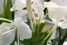 姜花又名野姜花。是姜科姜花属的多年生草本植物,茎高1-2米;叶片长圆状披针形或披针形,叶面光滑,叶背被短柔毛;穗状花序顶生,椭圆形,花芬芳,白色;蒴果卵状三棱形,微黄绿色;种子鲜红色,具橘红色的假种皮。…全部>>