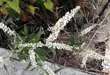 白背枫,马钱科醉鱼草属植物,常绿小灌木,高1-1.5米。嫩枝条四棱形,老枝条圆柱形;叶对生狭椭圆形或披针形,绿色无毛;总状花序窄而长,花冠芳香白色或淡绿色;蒴果椭圆状;种子灰褐色;花期1-10月,…全部>>