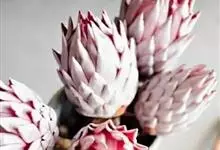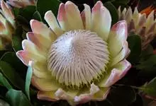 帝王花,山龙眼科帝王花属多年生常绿灌木植;茎干粗壮,叶色翠绿光亮;花朵呈圆球状;其苞片有的完全打开,使花朵呈扁平状;有的则呈半闭合状态,使花朵相对修长,…全部>>