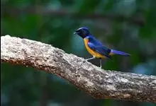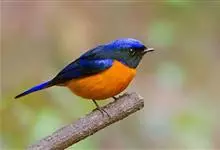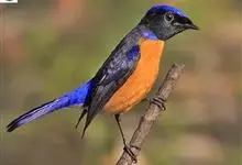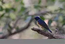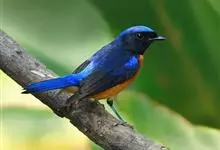 棕腹大仙鹟:体重24-28克,体长15-17厘米,是一种小型的色彩亮丽的鹟。雄鸟上体深蓝,下体棕色,脸黑,额、颈侧小块斑、翼角及腰部亮丽闪辉蓝色。与棕腹仙鹟易混淆,区别在色彩较暗。雌鸟灰褐,…全部>>