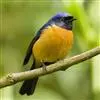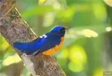 棕腹蓝仙鹟,Niltava vivida,鹟科仙鹟属的一种小型鸣禽,善在空中飞捕昆虫,中等体型18厘米,上体蓝,下体棕色,具黑色眼罩,胸橘黄渐变成臀部的皮黄色。国内分布于四川、云南、西藏和台湾等地。…全部>>