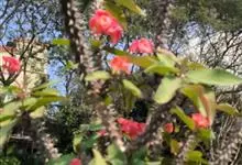 铁海棠为大戟科大戟属蔓生灌木植物;茎多分枝,具纵棱,呈旋转状;叶互生,通常集中于嫩枝上;每个花序基部边缘具微小的红色尖头;苞叶先端圆且具小尖头,无柄,上面鲜红色,下面淡红色;苞片丝状;子房光滑无毛,…全部>>