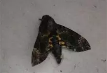 鬼脸天蛾,是鳞翅目天蛾科面形天蛾属动物。成虫翅展100~125毫米,体黑褐色;胸背有骷髅形斑纹;卵圆球形,直径约2毫米,淡黄绿色,表面光滑;老熟幼虫体长70~90毫米,蛹体长约56毫米;前翅为褐色,…全部>>