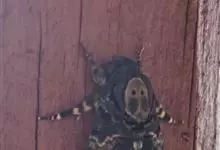 鬼脸天蛾,是鳞翅目天蛾科面形天蛾属动物。成虫翅展100~125毫米,体黑褐色;胸背有骷髅形斑纹;卵圆球形,直径约2毫米,淡黄绿色,表面光滑;老熟幼虫体长70~90毫米,蛹体长约56毫米;前翅为褐色,…全部>>