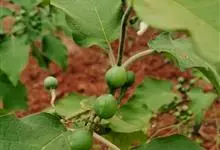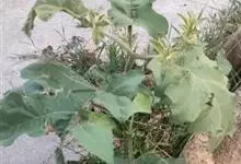 刺天茄,是茄科茄属的多年生草本植物。茎直立,枝条有刺;叶片大,互生,卵形或椭圆形,有长柄,叶面有短柔毛;花单生于枝顶,外面密被星状绒毛及细直刺,果被星状毛及直刺,浆果球形,光亮,…全部>>