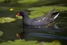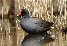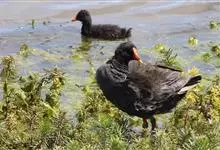 黑水鸡:是鹤形目、秧鸡科的鸟类,共有12个亚种。中型涉禽,体长24-35厘米。嘴长度适中,鼻孔狭长;头具额甲,后缘圆钝;嘴和额甲色彩鲜艳。翅圆形,第2枚初级飞羽最长,或第2枚和第3枚初级飞羽等长,…全部>>