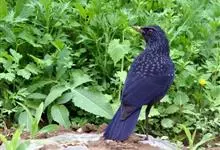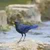 紫啸鸫是雀形目鹟科啸鸫属鸟类,又称黑雀儿,山鸣鸡、乌精。成鸟眼先及颏绒黑色;前额、头顶至背及肩羽和颈侧呈深紫蓝色,羽端具较密集的亮蓝色点斑;腰至尾上覆羽的深紫蓝色较暗而杂黑褐色,…全部>>